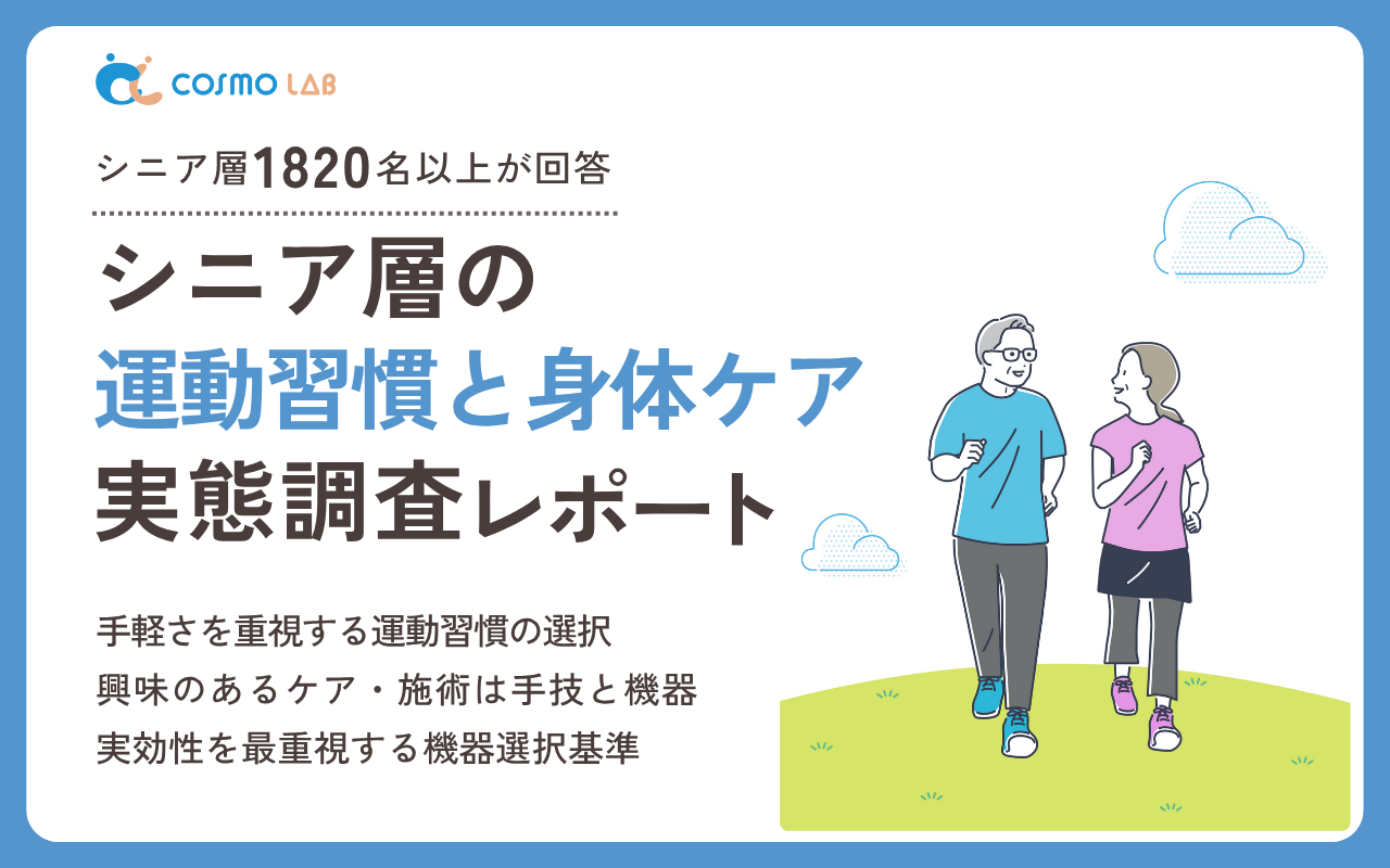 本レポートでは、50代以上のシニア層を対象に運動習慣や身体ケアに関する意識と実態調査を実施しました。運動の頻度や内容、身体の不調、ケア手段、家庭用機器の利用状況など、シニア世代の健康管理行動の実情が明らかになりました。