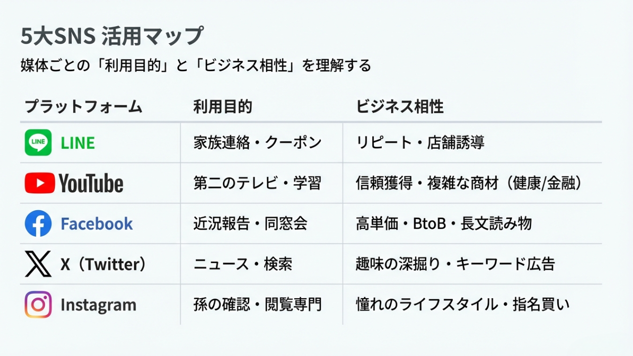 【徹底比較】シニアの主要5種SNSと利用目的